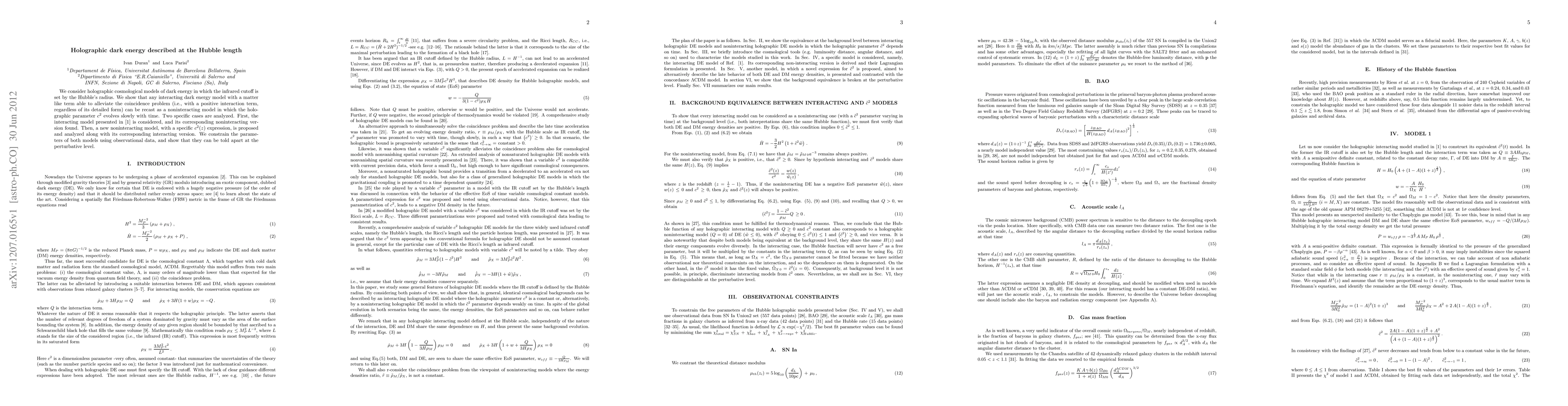 This paper explores holographic dark energy models where the infrared cutoff is defined by the Hubble radius, demonstrating that interacting dark energy models can be transformed into noninteracting models with a slowly evolving holographic parameter. It analyzes two specific cases, including a new noninteracting model, and constrains their parameters using observational data.