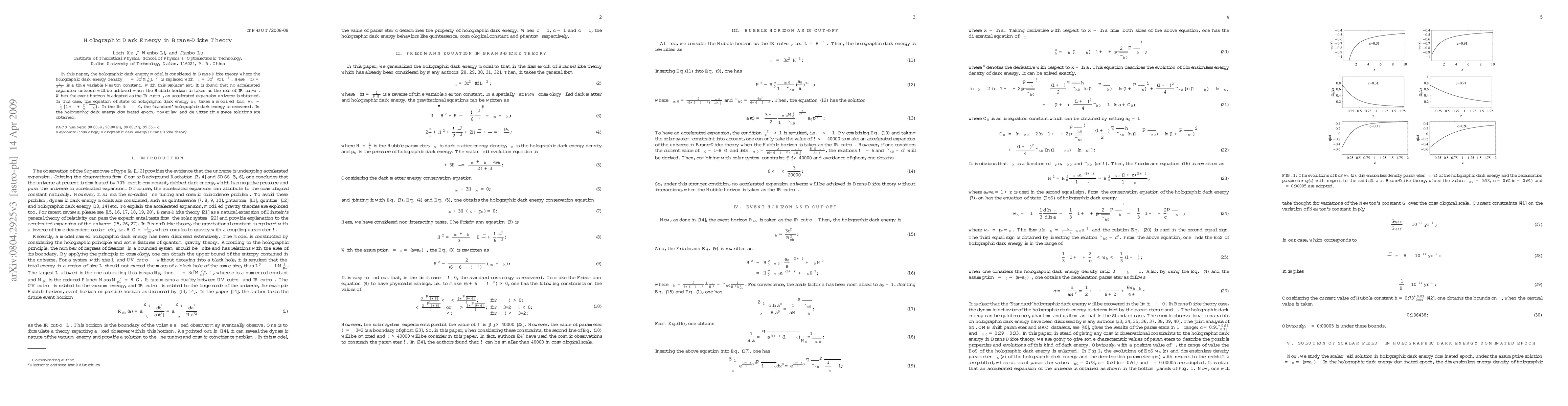 This paper explores the holographic dark energy model within Brans-Dicke theory, finding no accelerated expansion when the Hubble horizon is the IR cut-off, but an accelerated universe occurs with the event horizon as IR cut-off, leading to a modified equation of state for holographic dark energy.