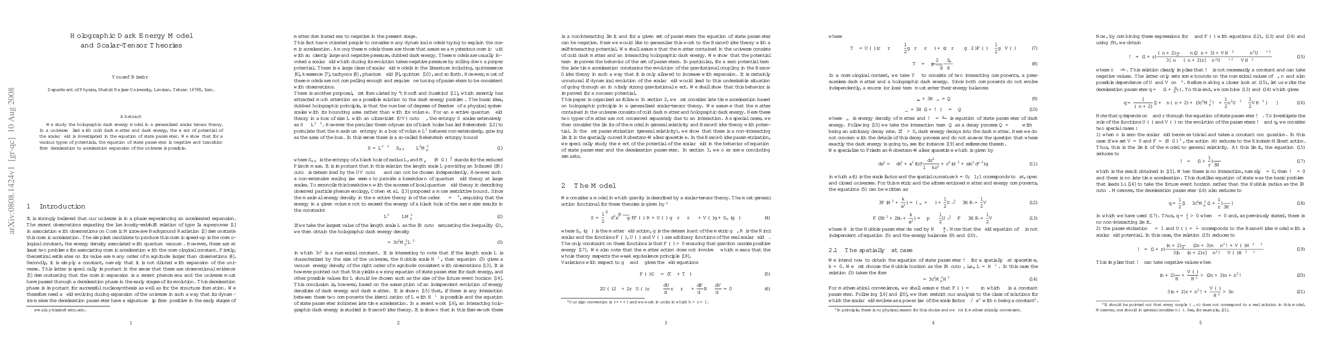 This paper investigates the holographic dark energy model within a generalized scalar-tensor theory, demonstrating that various scalar field potentials can lead to a negative equation of state parameter, enabling a transition from decelerated to accelerated expansion of the universe.