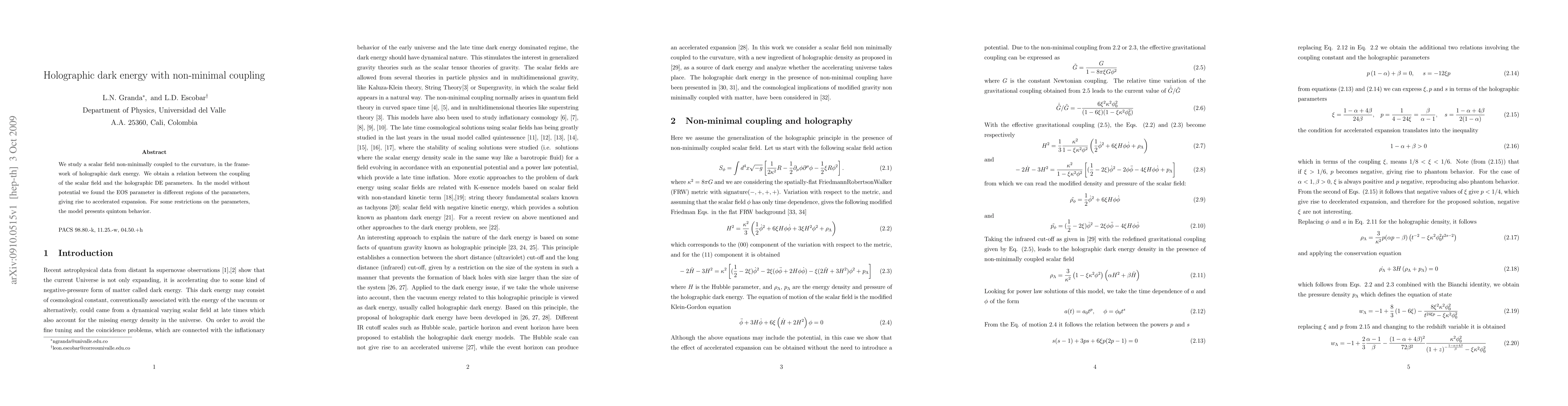 This paper explores a scalar field non-minimally coupled to curvature within the framework of holographic dark energy, deriving a relationship between the scalar field coupling and holographic dark energy parameters. The model without potential exhibits an equation of state parameter leading to accelerated expansion and, under certain parameter restrictions, displays quintom behavior.