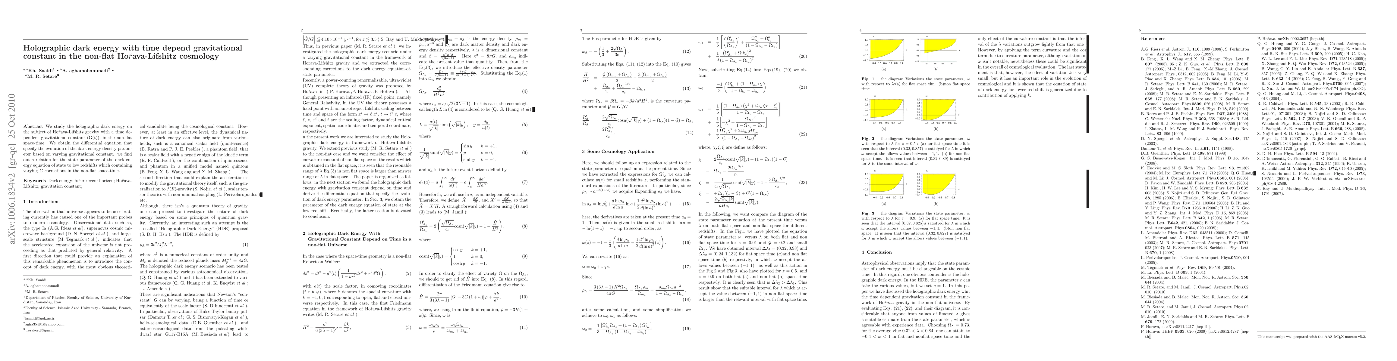 This paper investigates holographic dark energy within the framework of non-flat Hořava-Lifshitz cosmology, incorporating a time-dependent gravitational constant. It derives a differential equation for the dark energy density parameter and finds a relation for the state parameter of dark energy with corrections from the varying gravitational constant.
