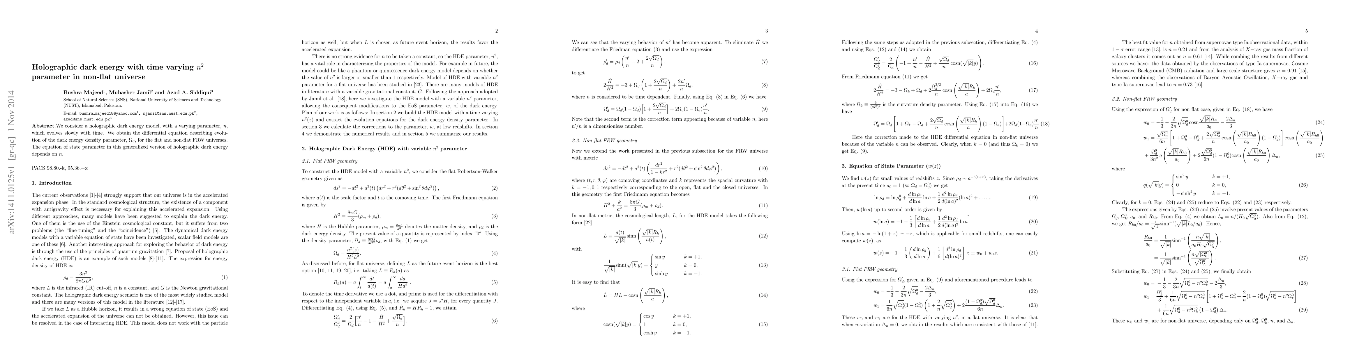 This paper explores a holographic dark energy model with a time-varying n^2 parameter in non-flat universes, describing the evolution of dark energy density and its implications for the universe's behavior.