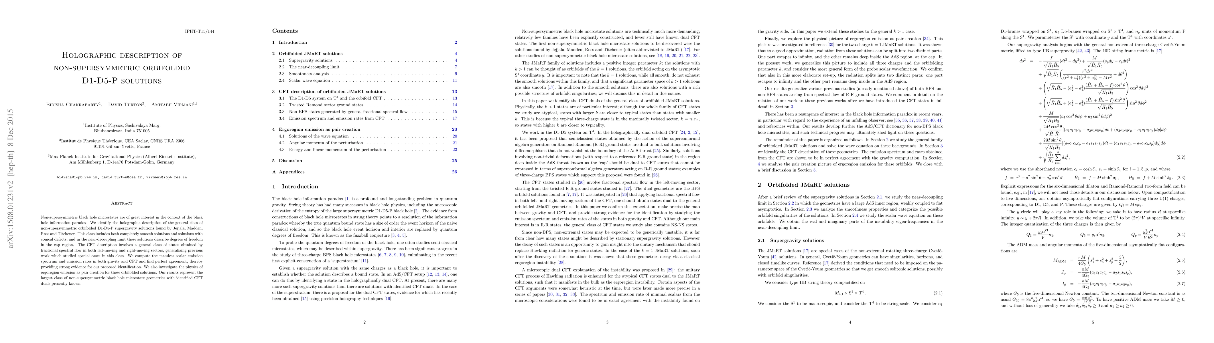 This paper identifies the holographic description of non-supersymmetric orbifolded D1-D5-P supergravity solutions, showing perfect agreement between gravity and CFT computations of massless scalar emission, and discusses the physics of ergoregion pair creation for these geometries. It represents the largest known class of such black hole microstates with identified CFT duals.