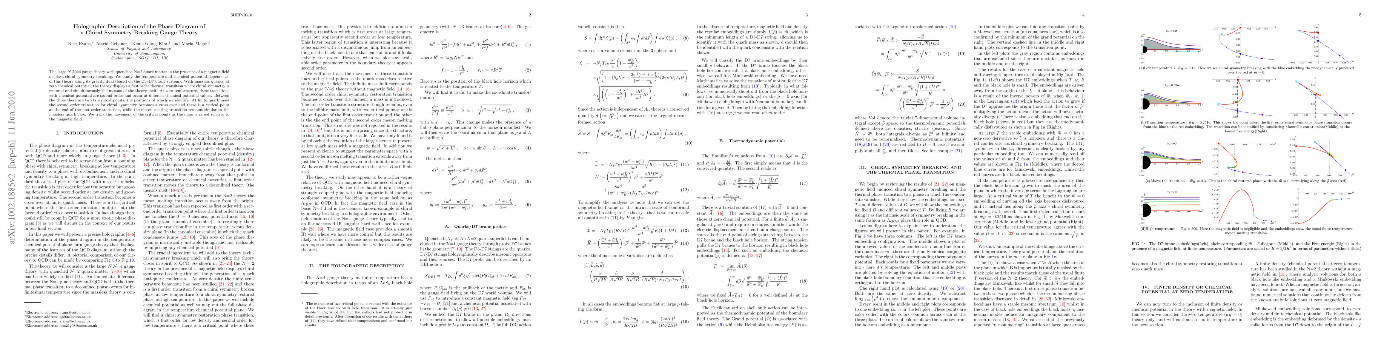 The large N_c N=4 gauge theory with quenched N=2 quark matter in the presence of a magnetic field displays chiral symmetry breaking. We study the temperature and chemical potential dependence of this theory using its gravity dual (based on the D3/D7 brane system). With massless quarks, at zero chemical potential, the theory displays a first order thermal transition where chiral symmetry is restored and simultaneously the mesons of the theory melt. At zero temperature, these transitions with chemical potential are second order and occur at different chemical potential values. Between the three there are two tri-critical points, the positions of which we identify. At finite quark mass the second order transition for chiral symmetry becomes a cross over and there is a critical point at the end of the first order transition, while the meson melting transition remains similar to the massless quark case. We track the movement of the critical points as the mass is raised relative to the magnetic field.
