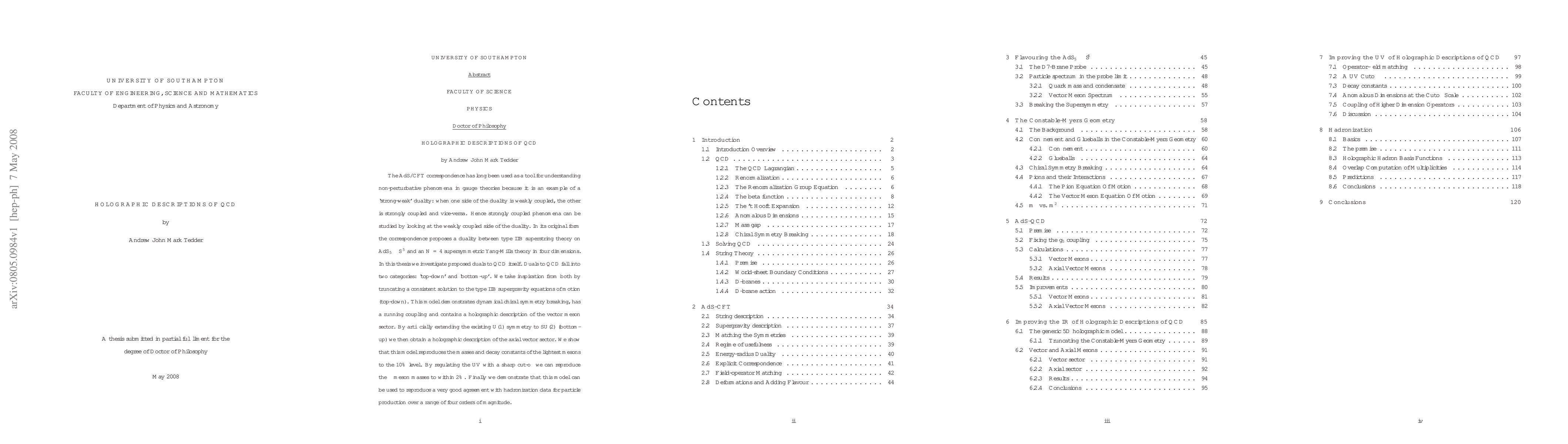 In this thesis we investigate proposed duals to QCD. Duals to QCD fall into two categories: `top-down' and `bottom-up'. We take inspiration from both by truncating a consistent solution to the type IIB supergravity equations of motion (top-down). This model demonstrates dynamical chiral symmetry breaking, has a running coupling and contains a holographic description of the vector meson sector. By artificially extending the existing U(1) symmetry to SU(2) (bottom-up) we then obtain a holographic description of the axial vector sector. We show that this model reproduces the masses and decay constants of the lightest mesons to the 10% level. By regulating the UV with a sharp cut-off we can reproduce the rho meson masses to within 2%. Finally we demonstrate that this model can be used to reproduce a very good agreement with hadronization data for particle production over a range of four orders of magnitude.
