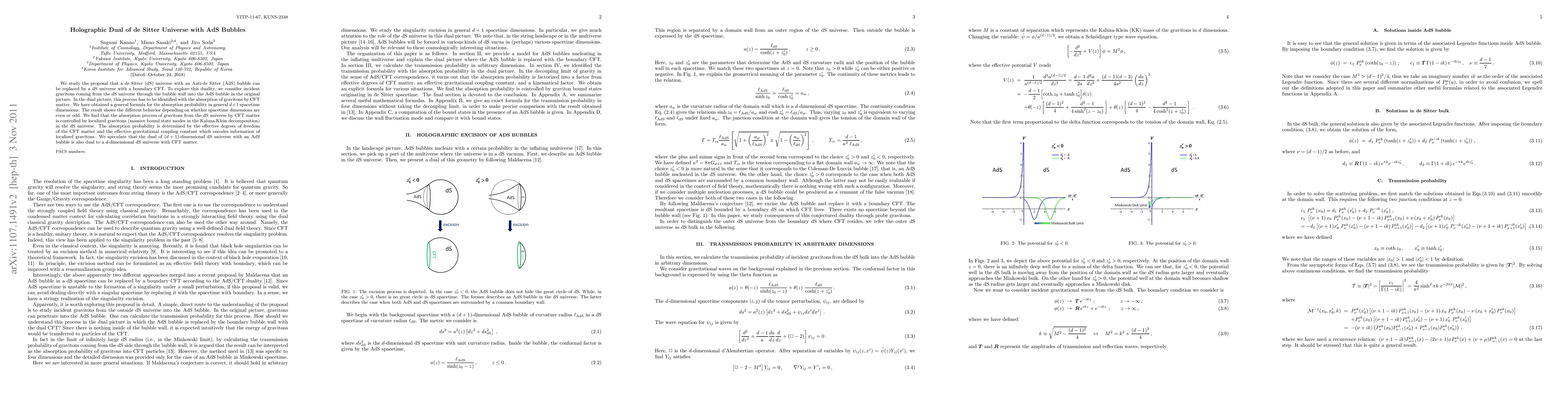 This paper explores the holographic duality of a de Sitter (dS) universe with an Anti-de Sitter (AdS) bubble, proposing that it can be represented by a dS universe with a boundary conformal field theory (CFT). The study reveals distinct absorption probabilities for gravitons depending on spacetime dimensions, suggesting a dual relationship between the dS universe and the CFT matter.