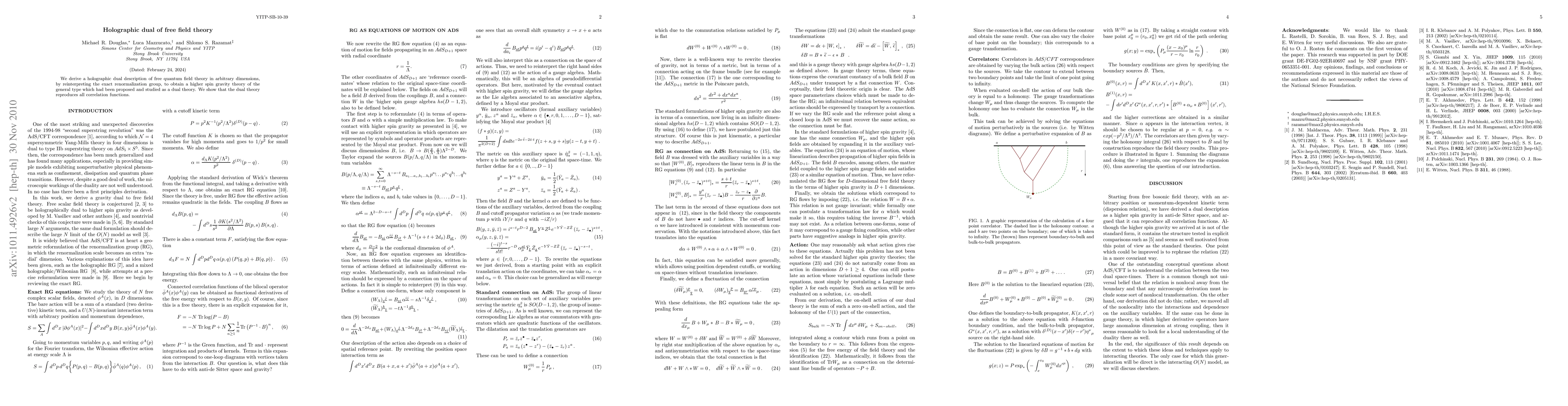 The paper derives a holographic dual for free quantum field theory using the exact renormalization group, resulting in a higher spin gravity theory that accurately reproduces all correlation functions. This establishes a new framework for understanding free field theories through gravitational duals.