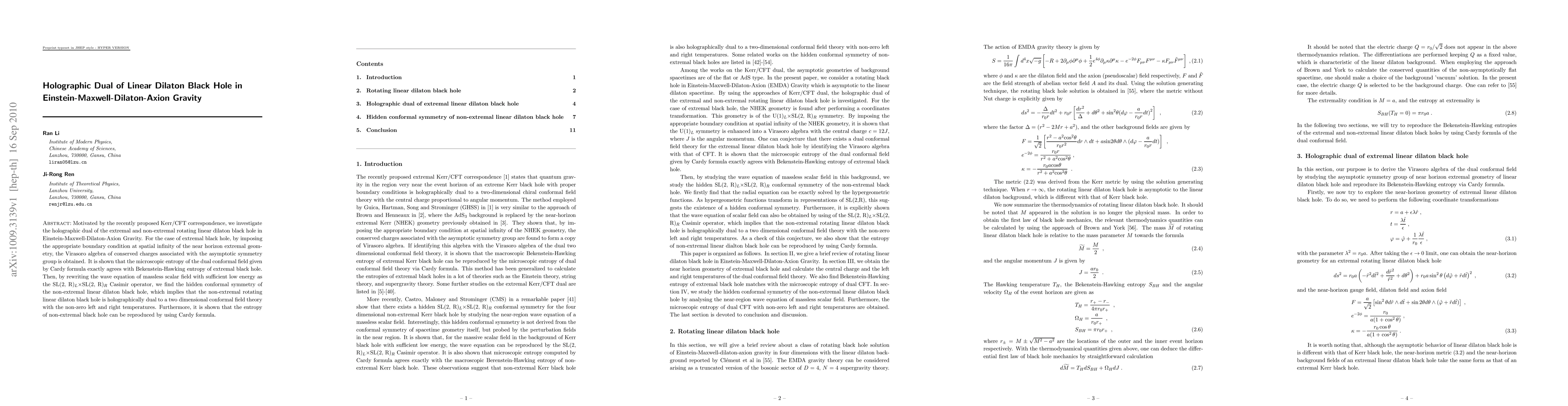 This paper explores the holographic dual of rotating linear dilaton black holes in Einstein-Maxwell-Dilaton-Axion Gravity, showing that extremal black holes correspond to a conformal field theory with matching entropy. For non-extremal black holes, it uncovers a hidden conformal symmetry and demonstrates that their entropy also aligns with the Cardy formula.