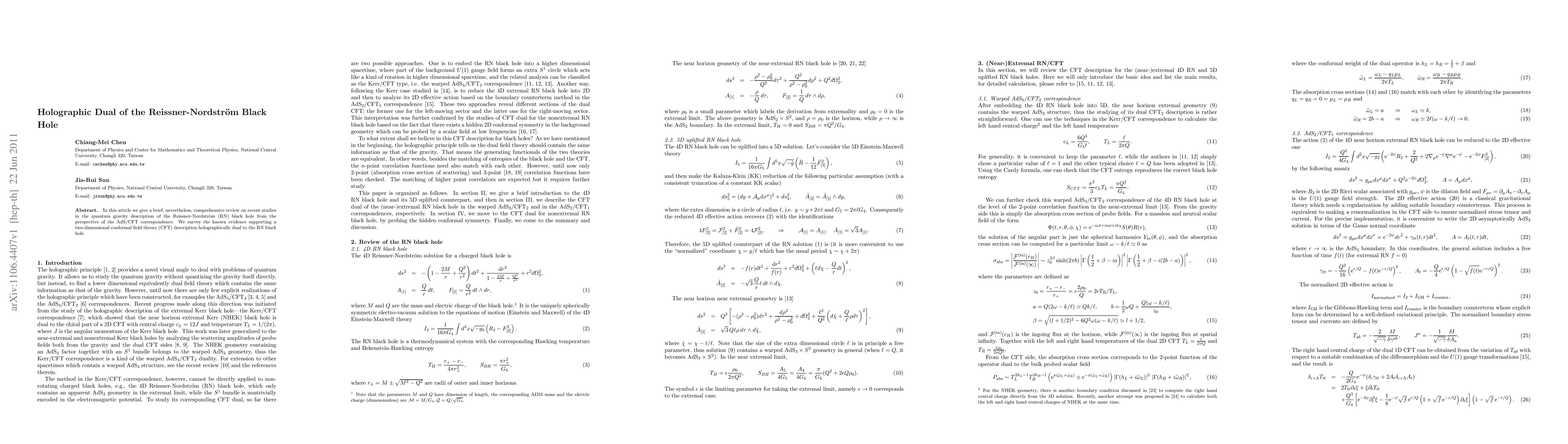 This paper reviews recent studies on the quantum gravity description of the Reissner-Nordström black hole using the AdS/CFT correspondence, focusing on evidence supporting a two-dimensional conformal field theory as its holographic dual.
