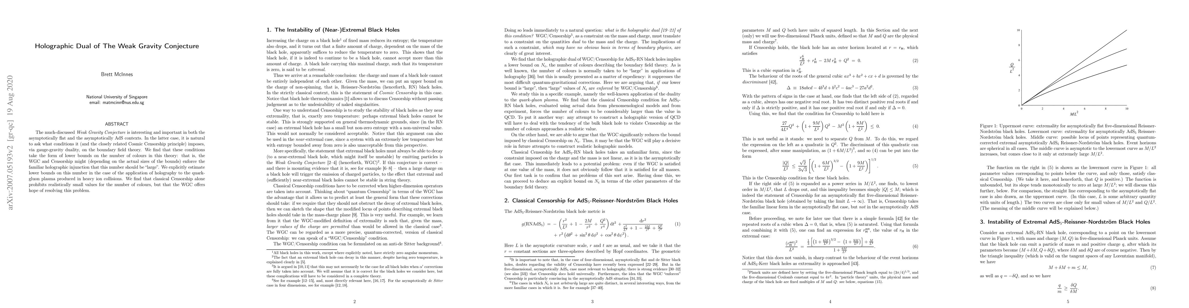 The much-discussed \emph{Weak Gravity Conjecture} is interesting and important in both the asymptotically flat and the asymptotically AdS contexts. In the latter case, it is natural to ask what conditions it (and the closely related Cosmic Censorship principle) imposes, via gauge-gravity duality, on the boundary field theory. We find that these conditions take the form of lower bounds on the number of colours in this theory: that is, the WGC and Censorship might (depending on the actual sizes of the bounds) enforce the familiar holographic injunction that this number should be "large". We explicitly estimate lower bounds on this number in the case of the application of holography to the quark-gluon plasma produced in heavy ion collisions. We find that classical Censorship alone prohibits realistically small values for the number of colours, but that the WGC offers hope of resolving this problem.