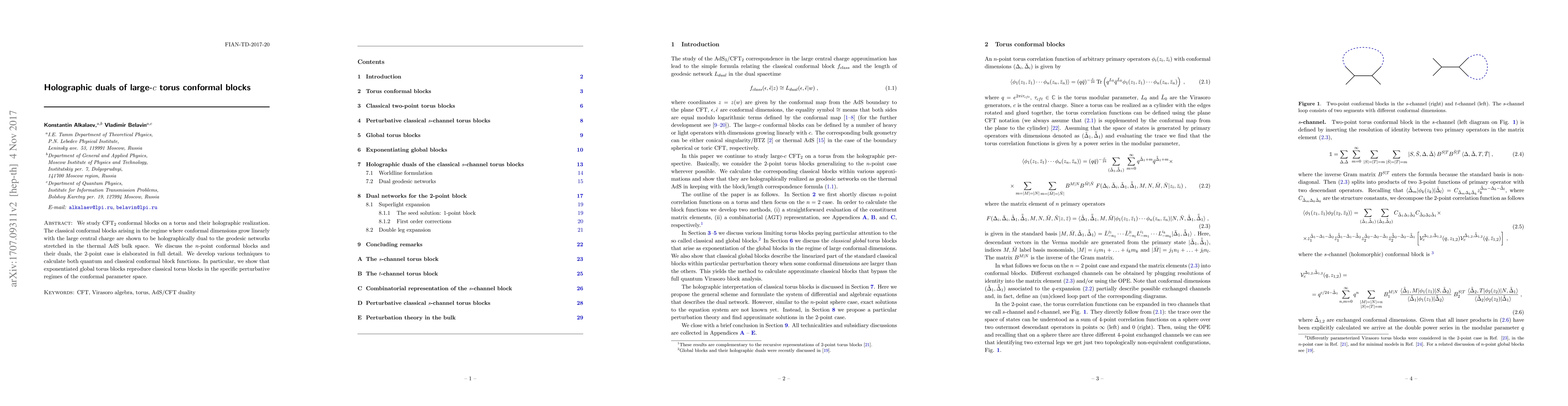 This paper investigates conformal blocks in 2D CFT on a torus and their holographic duals, demonstrating that classical blocks in large central charge regimes correspond to geodesic networks in thermal AdS space. The study focuses on n-point blocks, with detailed analysis of the 2-point case, and develops methods for calculating both quantum and classical conformal blocks.
