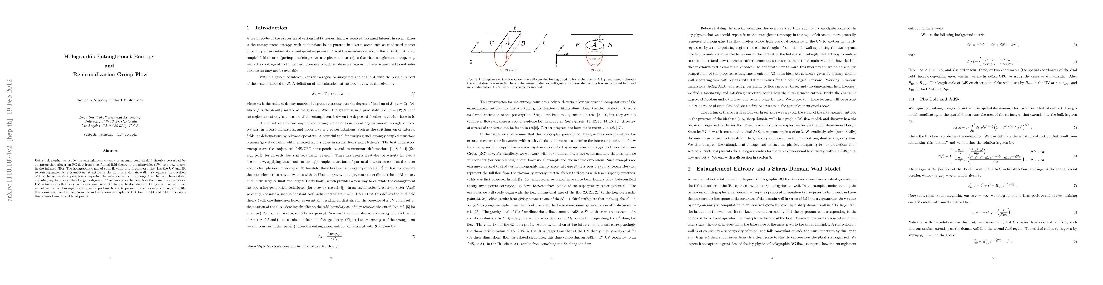 This paper uses holography to investigate the entanglement entropy in strongly coupled field theories undergoing renormalization group (RG) flows, revealing how the geometry of the domain wall separating UV and IR regions organizes field theory data, including a new area law controlled by the domain wall. The findings are tested in two known examples of RG flows in 3+1 and 2+1 dimensions.