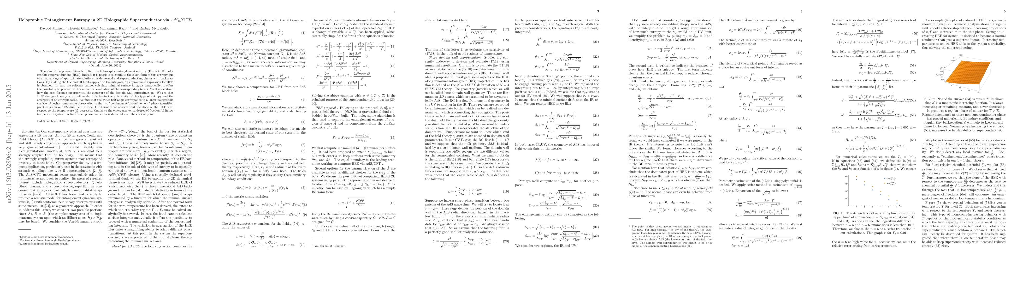 This paper computes the holographic entanglement entropy in 2D holographic superconductors using the $AdS_3/CFT_2$ correspondence, finding it changes linearly with the belt angle due to entropic forces. The study reveals no confinement/deconfinement phase transition and identifies a first-order phase transition near the critical point.