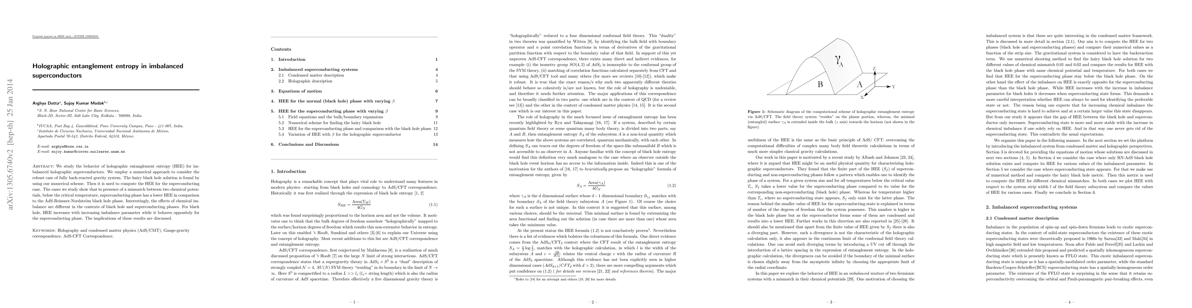 The paper investigates holographic entanglement entropy (HEE) in imbalanced holographic superconductors using a numerical method for fully back-reacted gravity systems. Findings reveal that below the critical temperature, the superconducting phase exhibits lower HEE than the AdS-Reissner-Nordstrom black hole phase. Intriguingly, chemical imbalance impacts black hole and superconducting phases differently: HEE rises with imbalance for black holes, but falls for superconductors.