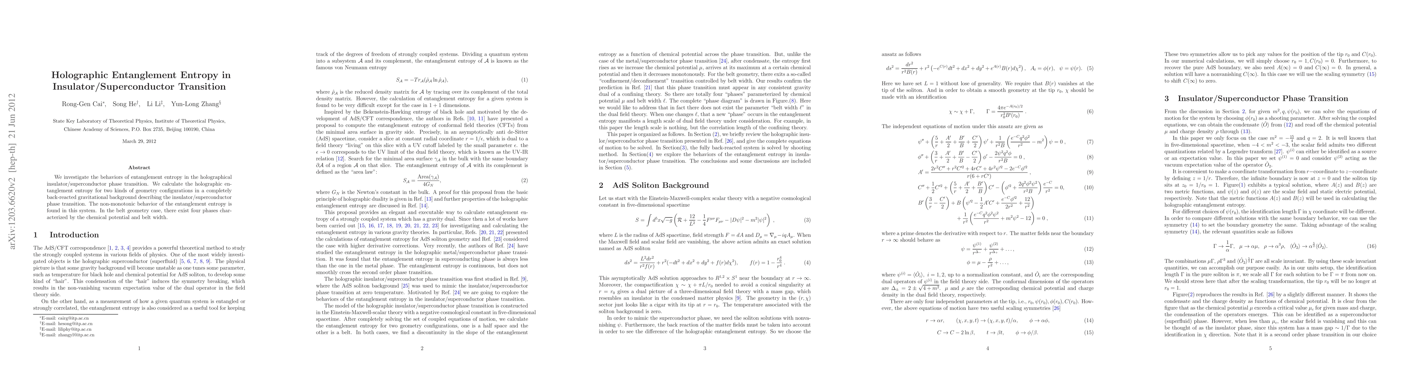 This study examines entanglement entropy in the holographic insulator/superconductor phase transition, revealing non-monotonic behaviors and four distinct phases in the belt geometry, characterized by chemical potential and belt width. The analysis uses a fully back-reacted gravitational background to describe the transition.