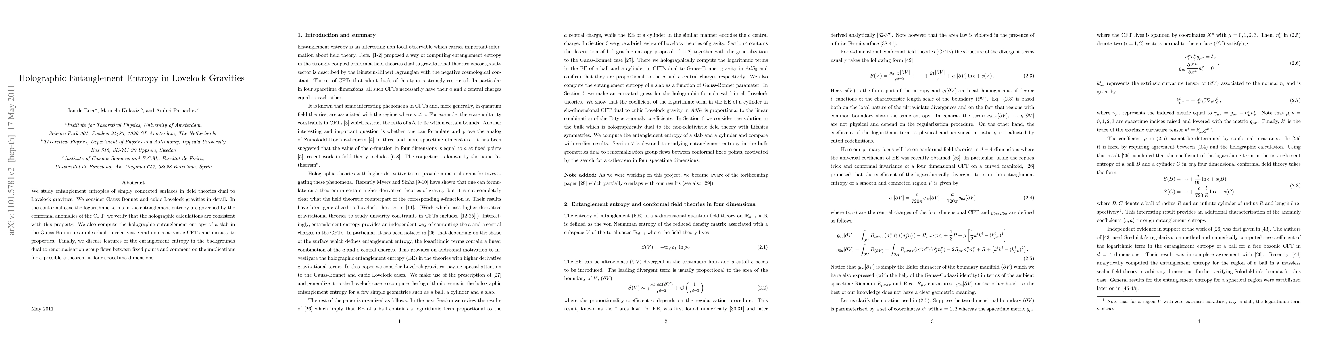 This paper investigates entanglement entropy in field theories dual to Lovelock gravities, particularly focusing on Gauss-Bonnet and cubic terms. It confirms that holographic calculations align with conformal anomalies and examines entanglement entropy in relativistic and non-relativistic CFTs, discussing implications for a potential c-theorem in four dimensions.