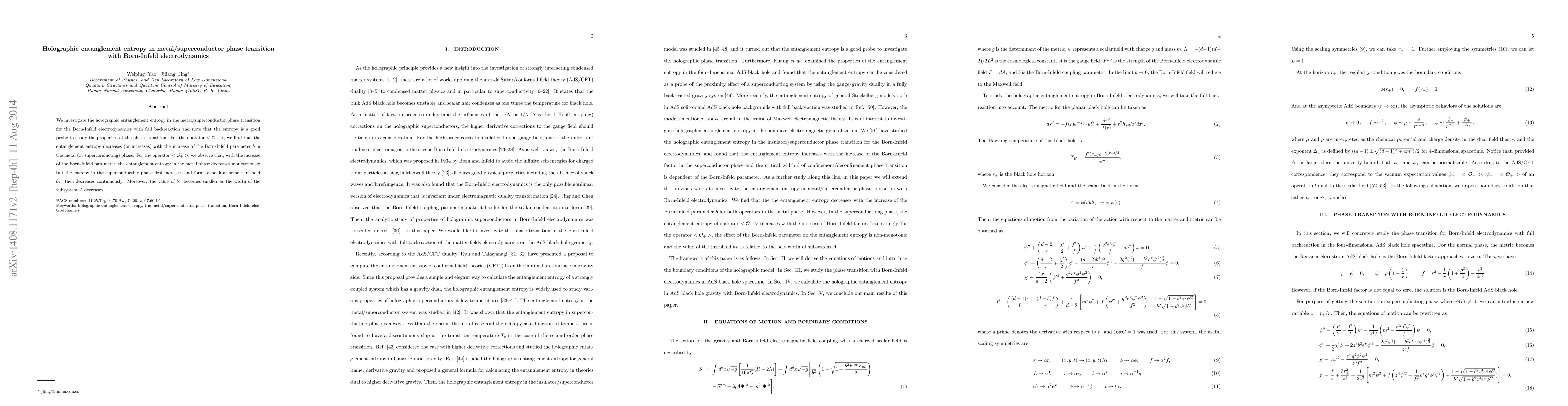 This paper studies the holographic entanglement entropy during metal/superconductor phase transitions in the context of Born-Infeld electrodynamics. The analysis reveals that the entropy varies with the Born-Infeld parameter $b$, providing insights into phase transition properties.