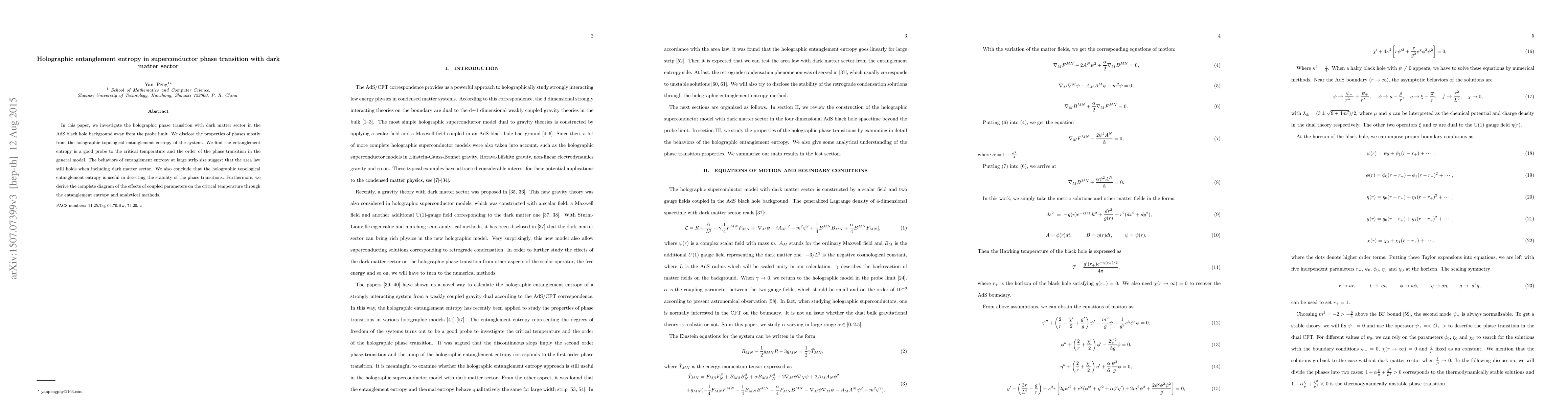 This paper explores the holographic phase transition in an AdS black hole background, incorporating a dark matter sector, and uses holographic topological entanglement entropy to analyze the critical temperature and order of the transition. The study finds that entanglement entropy maintains the area law and serves as a reliable indicator of phase transition stability.
