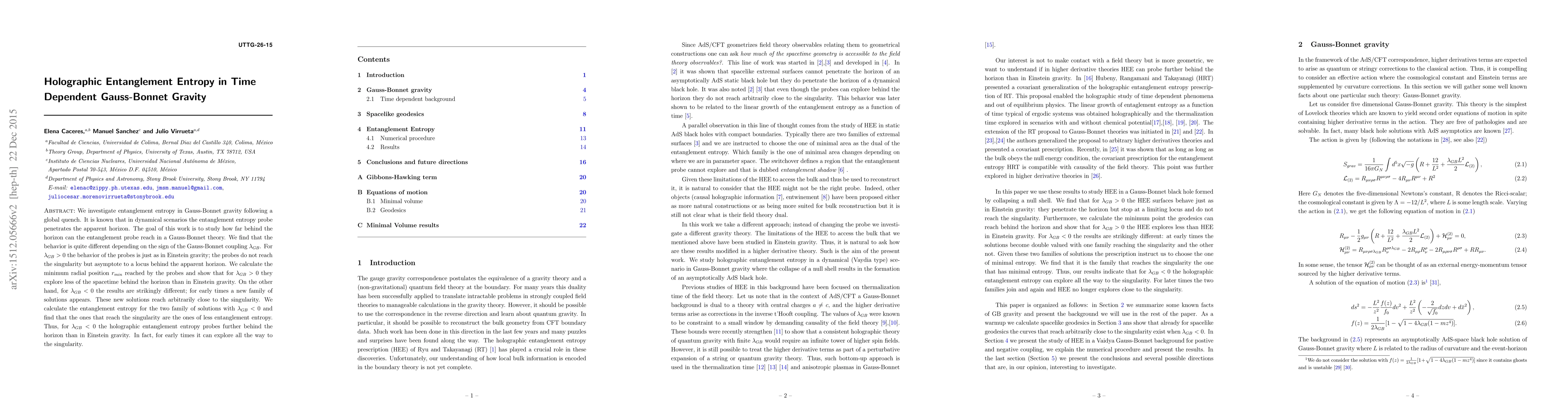 This paper investigates how entanglement entropy behaves in Gauss-Bonnet gravity after a global quench, finding that for positive Gauss-Bonnet coupling the probe reaches less spacetime behind the horizon compared to Einstein gravity. For negative coupling, a new set of solutions emerges that can probe closer to the singularity, with those reaching the singularity having less entropy.