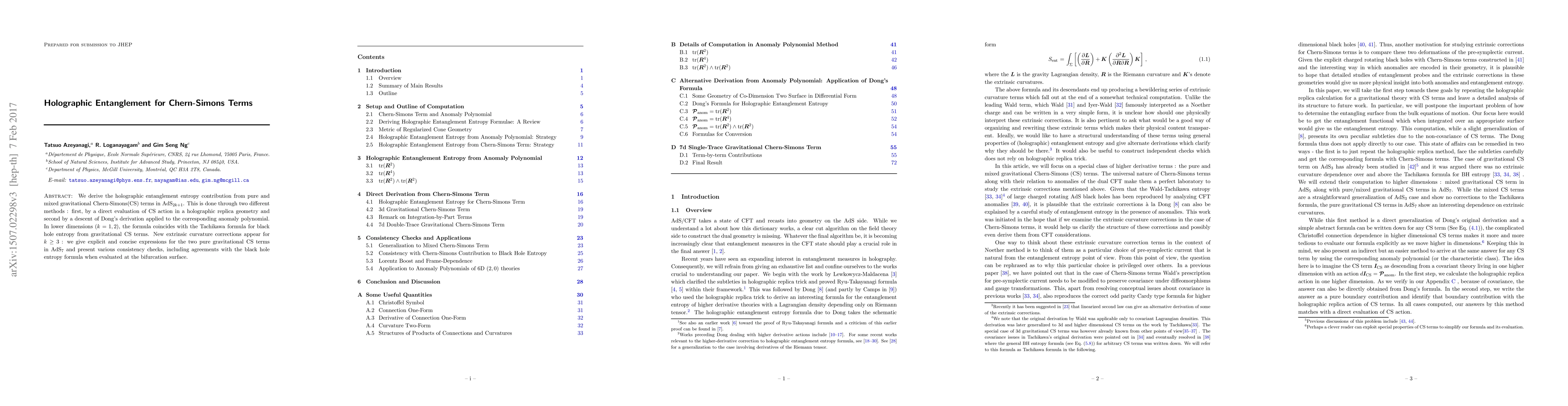 We derive the holographic entanglement entropy contribution from pure and mixed gravitational Chern-Simons(CS) terms in AdS$_{2k+1}$. This is done through two different methods : first, by a direct evaluation of CS action in a holographic replica geometry and second by a descent of Dong's derivation applied to the corresponding anomaly polynomial. In lower dimensions $(k=1,2)$, the formula coincides with the Wald-Tachikawa formula for black hole entropy from gravitational CS terms. New extrinsic curvature corrections appear for $k\geq 3$ : we give explicit and concise expressions for the two pure gravitational CS terms in AdS$_7$ and present various consistency checks, including agreements with the black hole entropy formula when evaluated at the bifurcation surface.