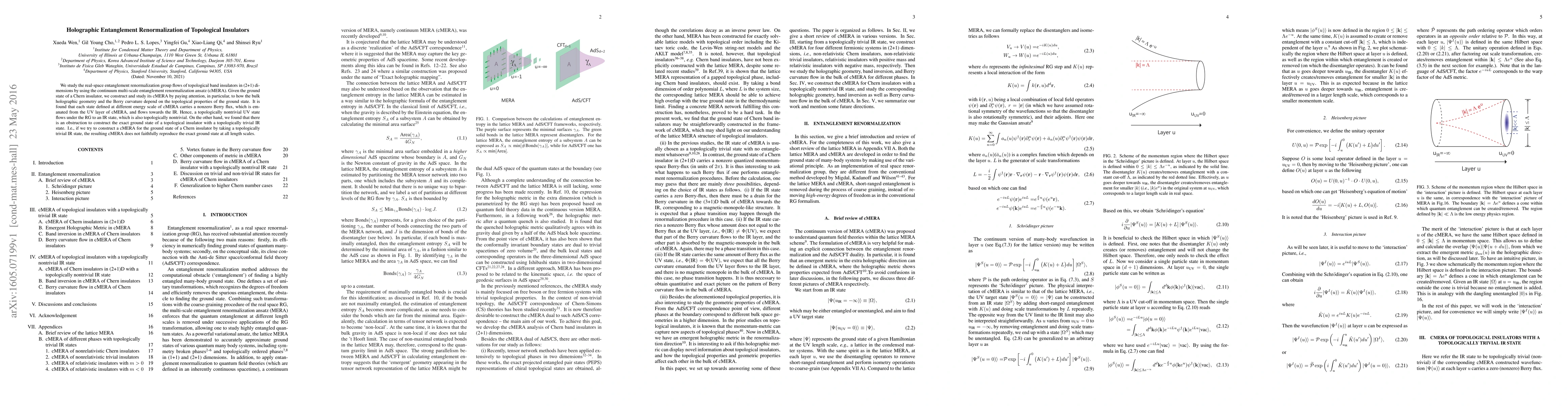 We study the real-space entanglement renormalization group flows of topological band insulators in (2+1) dimensions by using the continuum multi-scale entanglement renormalization ansatz (cMERA). Given the ground state of a Chern insulator, we construct and study its cMERA by paying attention, in particular, to how the bulk holographic geometry and the Berry curvature depend on the topological properties of the ground state. It is found that each state defined at different energy scale of cMERA carries a nonzero Berry flux, which is emanated from the UV layer of cMERA, and flows towards the IR. Hence, a topologically nontrivial UV state flows under the RG to an IR state, which is also topologically nontrivial. On the other hand, we found that there is an obstruction to construct the exact ground state of a topological insulator with a topologically trivial IR state. I.e., if we try to construct a cMERA for the ground state of a Chern insulator by taking a topologically trivial IR state, the resulting cMERA does not faithfully reproduce the exact ground state at all length scales.