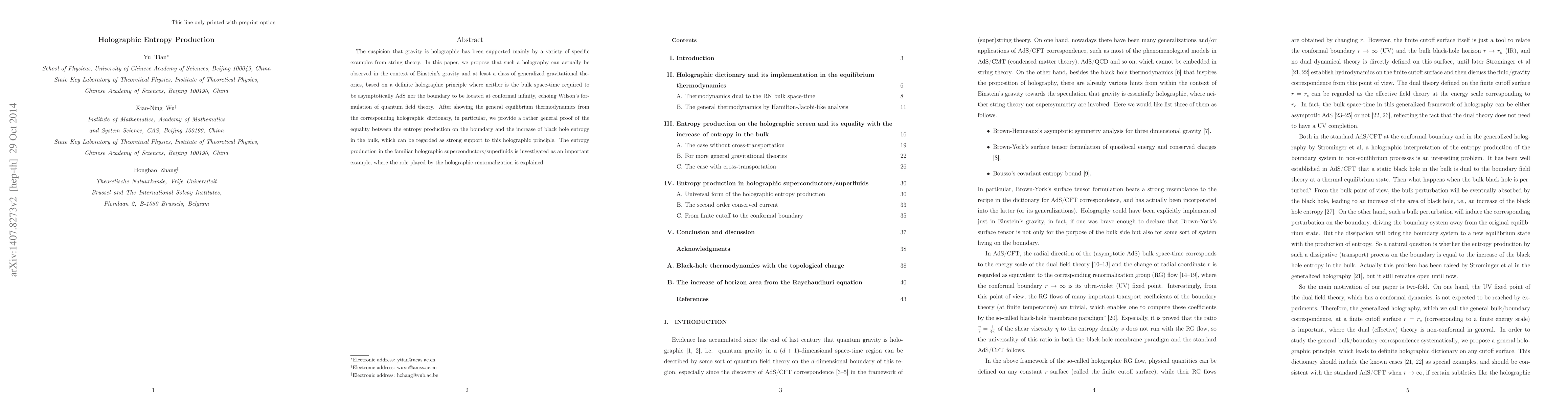 This paper proposes a method to observe holography in Einstein's gravity and generalized gravitational theories, demonstrating a holographic principle that does not require specific asymptotic conditions. It provides a proof of the equality between boundary entropy production and bulk black hole entropy increase, supporting the holographic principle, and examines holographic superconductors/superfluids to illustrate the role of holographic renormalization.