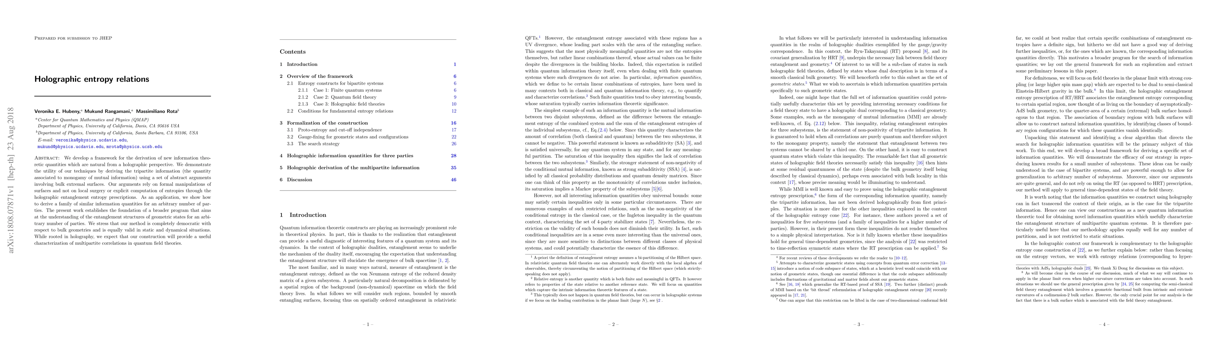 Researchers develop a framework to derive new information-theoretic quantities from a holographic perspective, enabling the study of multipartite correlations in quantum field theories. They demonstrate the utility of their approach through the derivation of tripartite information and show its applicability to an arbitrary number of parties.