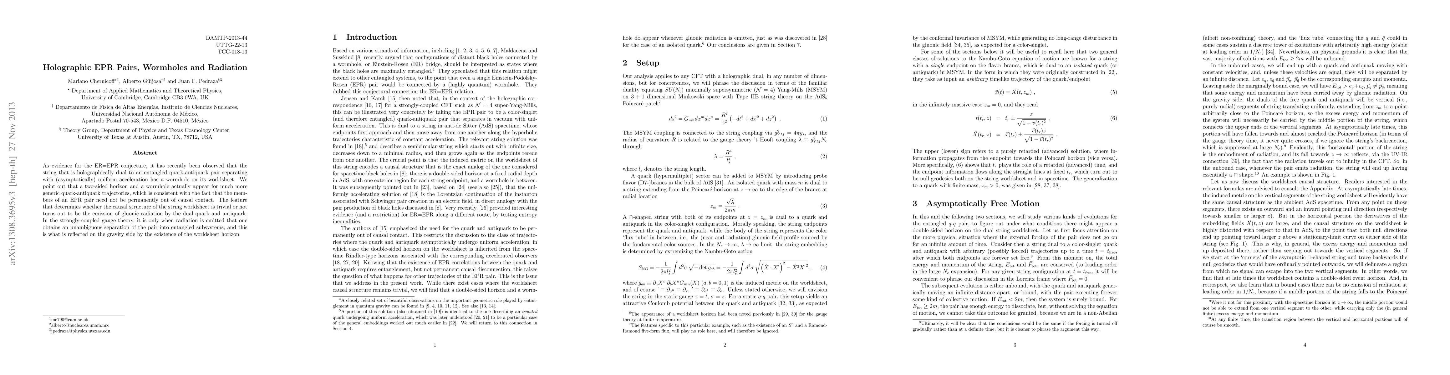 As evidence for the ER=EPR conjecture, it has recently been observed that the string that is holographically dual to an entangled quark-antiquark pair separating with (asymptotically) uniform acceleration has a wormhole on its worldsheet. We point out that a two-sided horizon and a wormhole actually appear for much more generic quark-antiquark trajectories, which is consistent with the fact that the members of an EPR pair need not be permanently out of causal contact. The feature that determines whether the causal structure of the string worldsheet is trivial or not turns out to be the emission of gluonic radiation by the dual quark and antiquark. In the strongly-coupled gauge theory, it is only when radiation is emitted that one obtains an unambiguous separation of the pair into entangled subsystems, and this is what is reflected on the gravity side by the existence of the worldsheet horizon.
