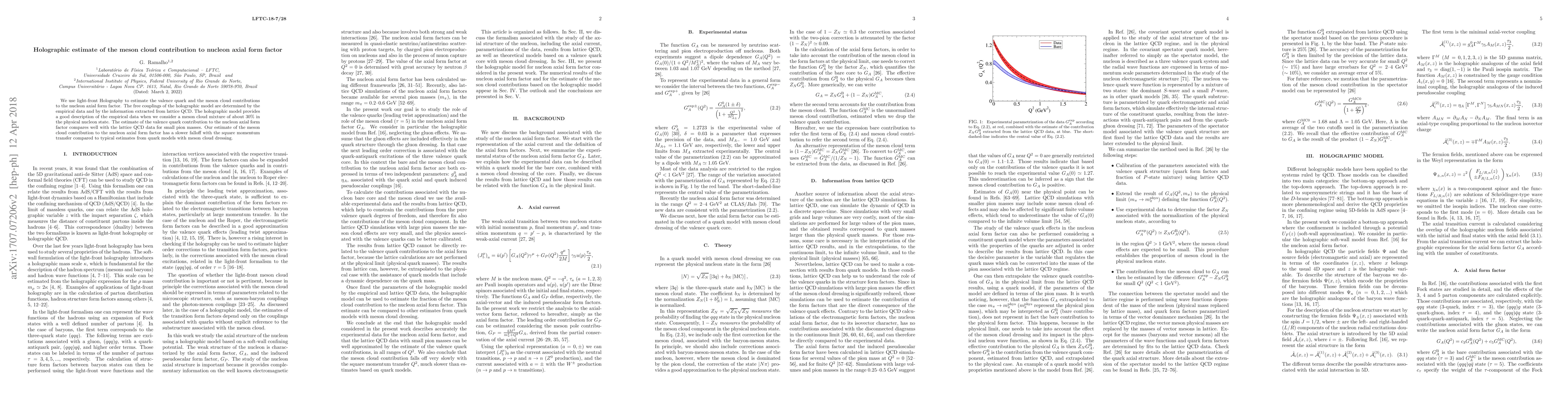 This research employs light-front Holography to assess the nucleon axial form factor, distinguishing between valence quark and meson cloud contributions. The model fits empirical data and lattice QCD results, showing a significant 30% meson cloud in nucleons, with its estimated meson cloud contribution falling off more slowly with momentum transfer than typical quark model predictions.