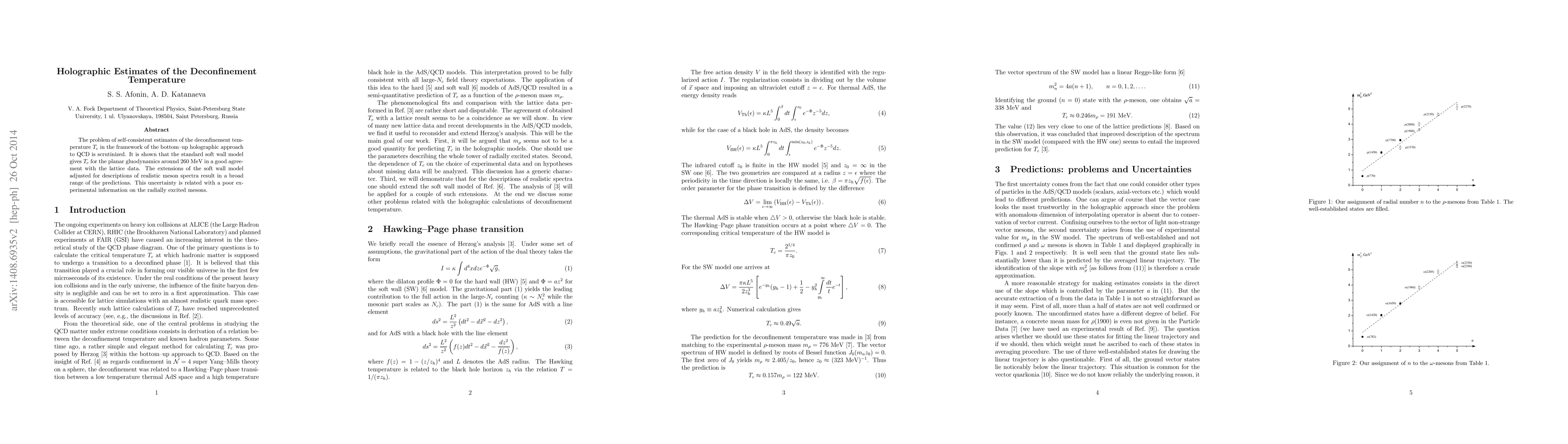 This paper examines the deconfinement temperature Tc in QCD using a bottom-up holographic approach, finding that the soft wall model yields Tc around 260 MeV, consistent with lattice data. However, model adjustments for realistic meson spectra lead to varied predictions, reflecting the lack of experimental data on radially excited mesons.