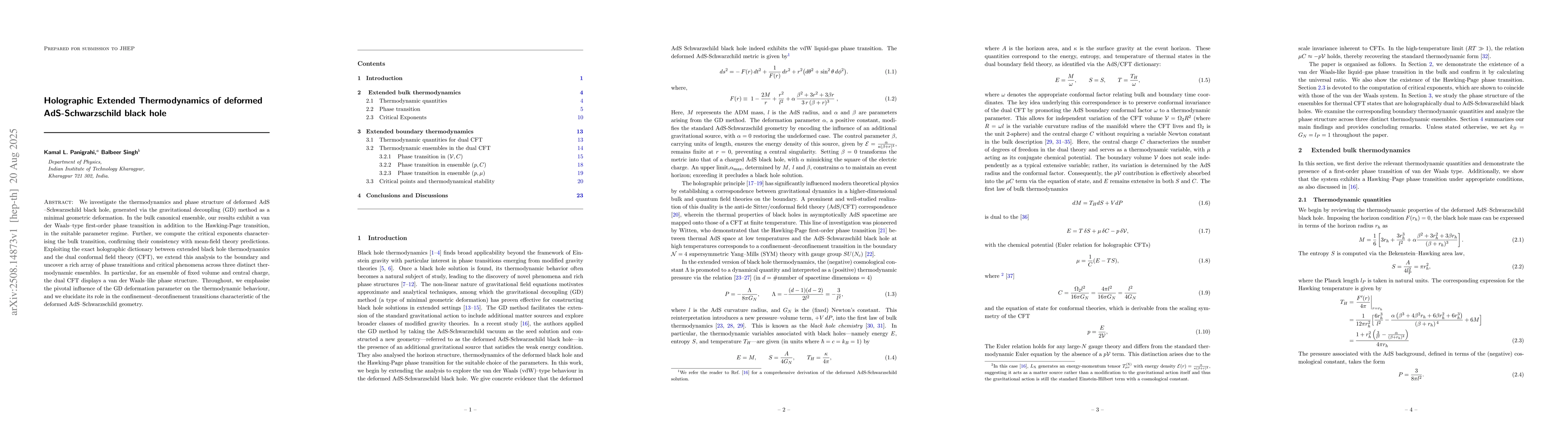 This study contributes to understanding the thermodynamics and phase structure of deformed AdS-Schwarzschild black holes, with implications for holographic principles and conformal field theories.