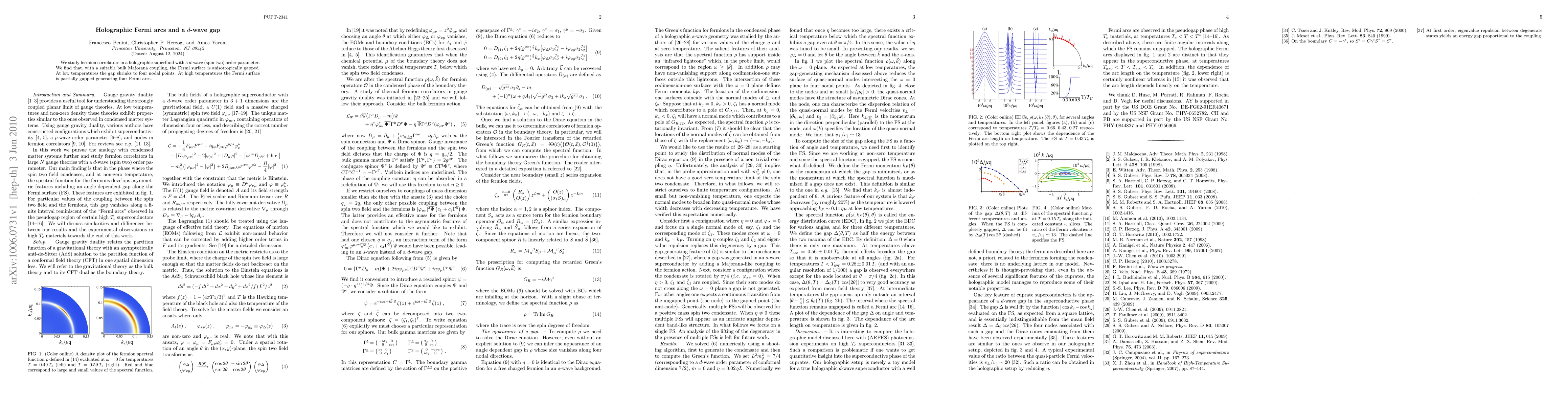 We study fermion correlators in a holographic superfluid with a d-wave (spin two) order parameter. We find that, with a suitable bulk Majorana coupling, the Fermi surface is anisotropically gapped. At low temperatures the gap shrinks to four nodal points. At high temperatures the Fermi surface is partially gapped generating four Fermi arcs.