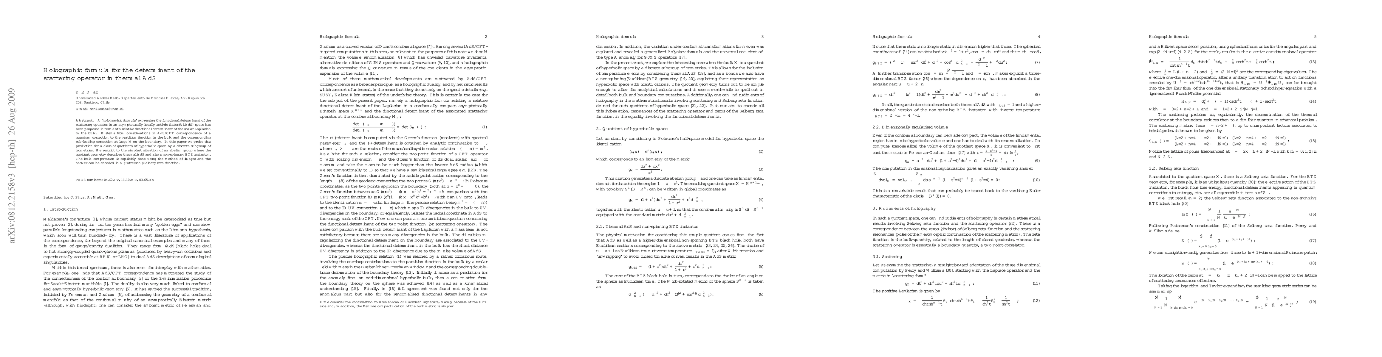 A 'holographic formula' expressing the functional determinant of the scattering operator in an asymptotically locally anti-de Sitter(ALAdS) space has been proposed in terms of a relative functional determinant of the scalar Laplacian in the bulk. It stems from considerations in AdS/CFT correspondence of a quantum correction to the partition function in the bulk and the corresponding subleading correction at large N on the boundary. In this paper we probe this prediction for a class of quotients of hyperbolic space by a discrete subgroup of isometries. We restrict to the simplest situation of an abelian group where the quotient geometry describes thermal AdS and also the non-spinning BTZ instanton. The bulk computation is explicitly done using the method of images and the answer can be encoded in a (Patterson-)Selberg zeta-function.