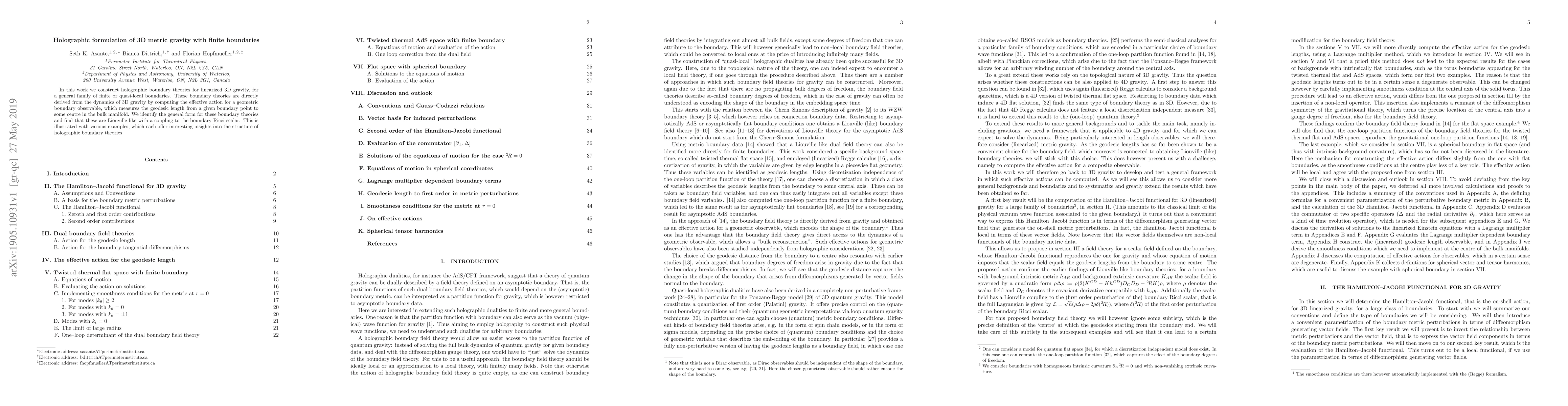 In this work we construct holographic boundary theories for linearized 3D gravity, for a general family of finite or quasi-local boundaries. These boundary theories are directly derived from the dynamics of 3D gravity by computing the effective action for a geometric boundary observable, which measures the geodesic length from a given boundary point to some centre in the bulk manifold. We identify the general form for these boundary theories and find that these are Liouville like with a coupling to the boundary Ricci scalar. This is illustrated with various examples, which each offer interesting insights into the structure of holographic boundary theories.