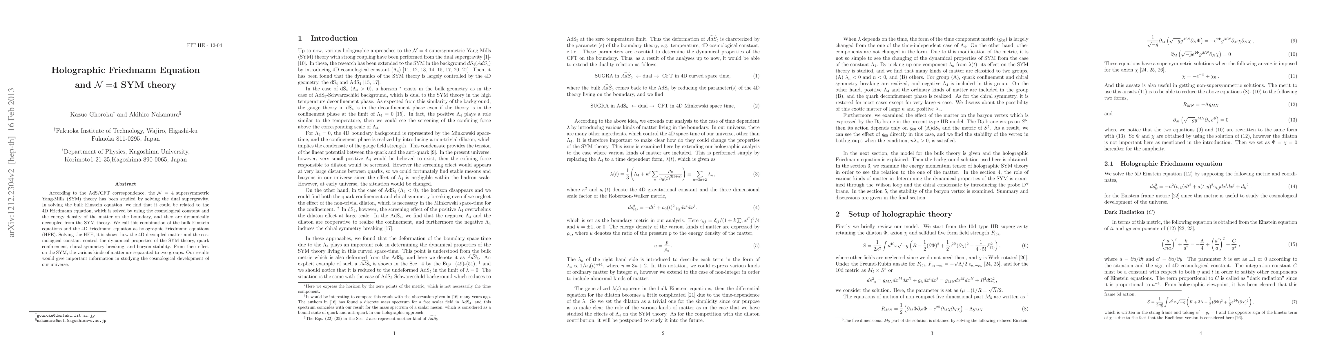 This paper explores the AdS/CFT correspondence, linking ${\cal N}=4$ SYM theory to a dual supergravity solution. It demonstrates that the bulk Einstein equations can be related to a 4D Friedmann equation, termed the holographic Friedmann equation (HFE), which reveals how cosmological constants and boundary matter energy density dynamically influence SYM theory dynamics, including quark confinement and chiral symmetry breaking.