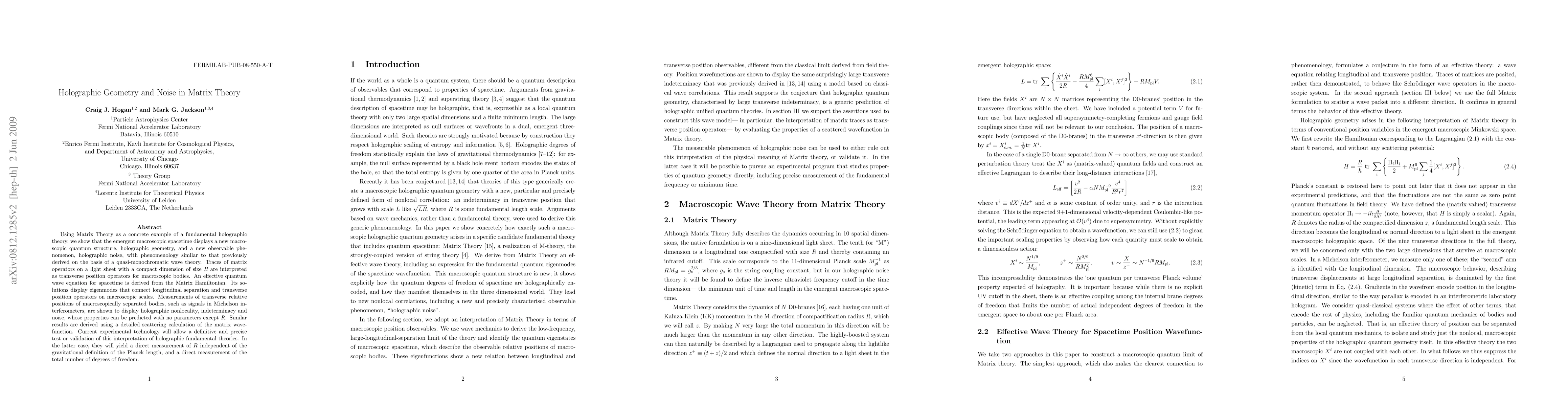 This paper demonstrates that Matrix Theory, a holographic theory, reveals a new macroscopic quantum structure termed holographic geometry and a phenomenon called holographic noise. Experimental tests could validate these findings and provide direct measurements of fundamental parameters independent of gravitational definitions.