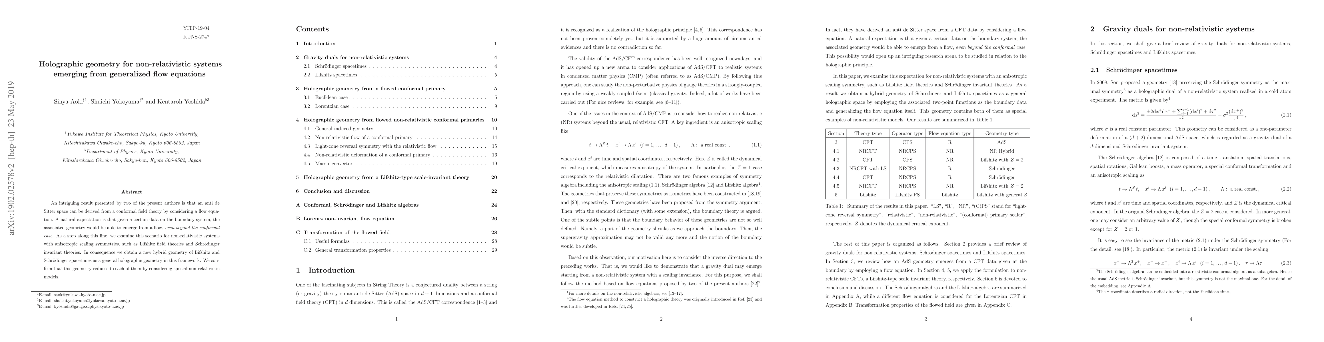 An intriguing result presented by two of the present authors is that an anti de Sitter space can be derived from a conformal field theory by considering a flow equation. A natural expectation is that given a certain data on the boundary system, the associated geometry would be able to emerge from a flow, even beyond the conformal case. As a step along this line, we examine this scenario for non-relativistic systems with anisotropic scaling symmetries, such as Lifshitz field theories and Schr\"odinger invariant theories. In consequence we obtain a new hybrid geometry of Lifshitz and Schr\"odinger spacetimes as a general holographic geometry in this framework. We confirm that this geometry reduces to each of them by considering special non-relativistic models.