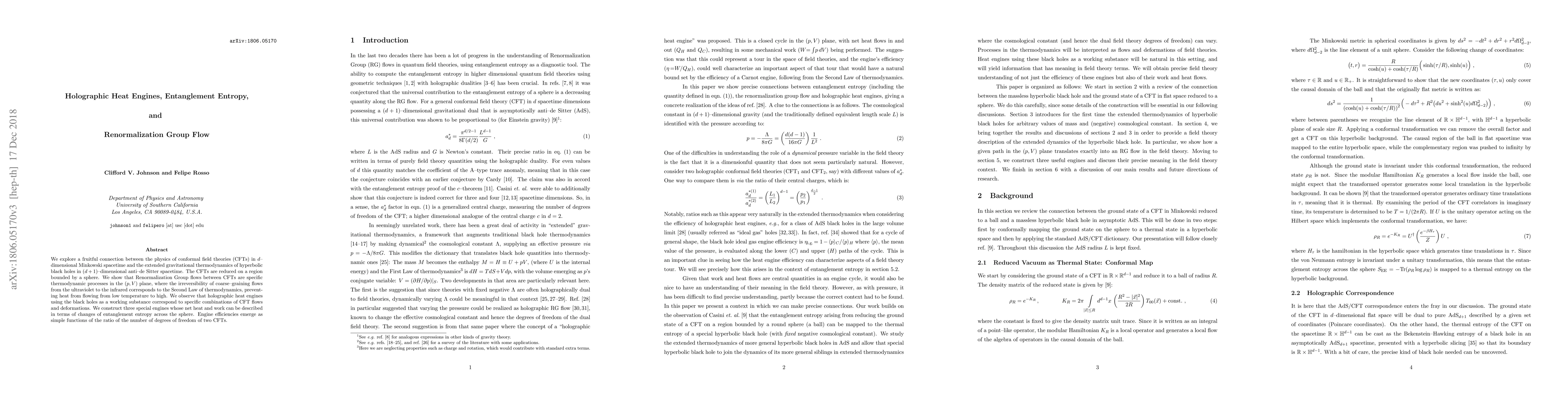 This paper connects the thermodynamics of hyperbolic black holes in AdS spacetime to the renormalization group flows in d-dimensional CFTs, showing that RG flows mimic thermodynamic processes. Holographic heat engines are constructed using black holes, with efficiencies linked to entanglement entropy changes and the ratio of degrees of freedom in CFTs.