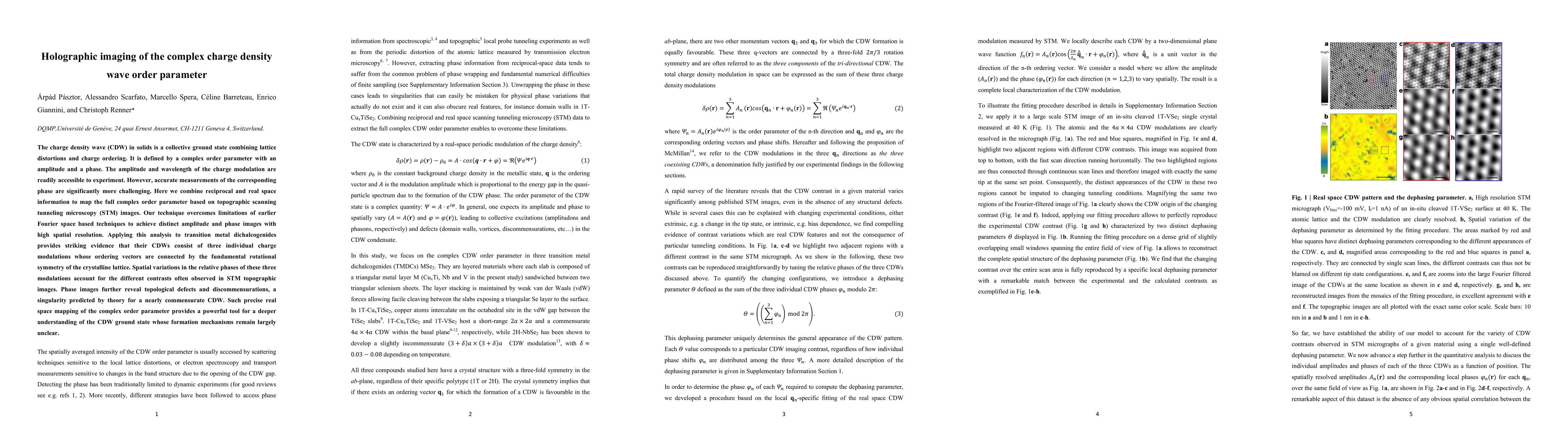 The charge density wave (CDW) in solids is a collective ground state combining lattice distortions and charge ordering. It is defined by a complex order parameter with an amplitude and a phase. The amplitude and wavelength of the charge modulation are readily accessible to experiment. However, accurate measurements of the corresponding phase are significantly more challenging. Here we combine reciprocal and real space information to map the full complex order parameter based on topographic scanning tunneling microscopy (STM) images. Our technique overcomes limitations of earlier Fourier space based techniques to achieve distinct amplitude and phase images with high spatial resolution. Applying this analysis to transition metal dichalcogenides provides striking evidence that their CDWs consist of three individual charge modulations whose ordering vectors are connected by the fundamental rotational symmetry of the crystalline lattice. Spatial variations in the relative phases of these three modulations account for the different contrasts often observed in STM topographic images. Phase images further reveal topological defects and discommensurations, a singularity predicted by theory for a nearly commensurate CDW. Such precise real space mapping of the complex order parameter provides a powerful tool for a deeper understanding of the CDW ground state whose formation mechanisms remain largely unclear.