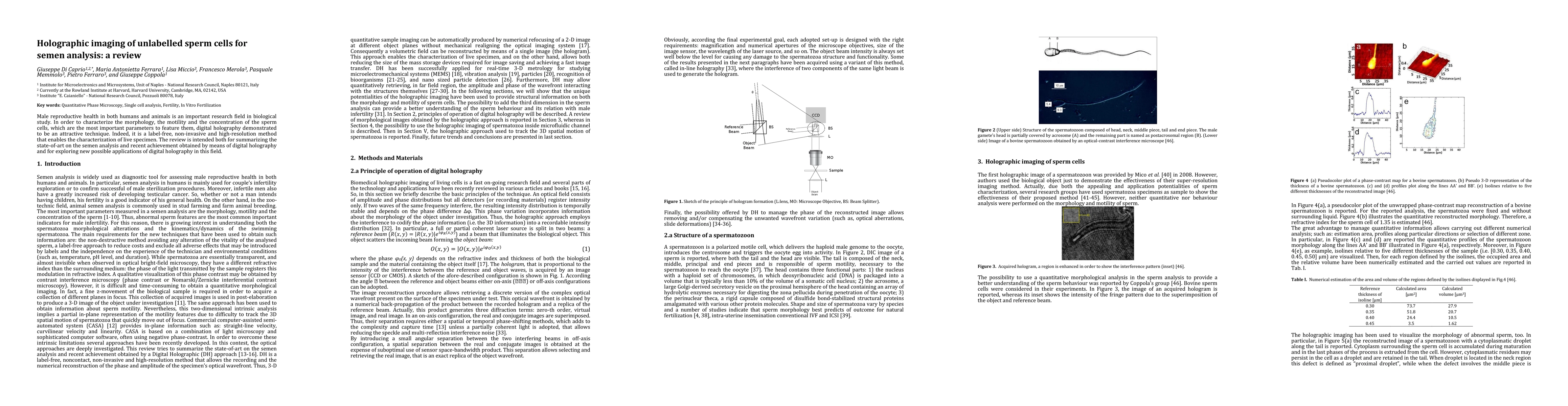 This review explores the use of digital holography for label-free, non-invasive semen analysis, highlighting its high-resolution capabilities for characterizing sperm morphology, motility, and concentration. It also discusses recent advancements and potential future applications in male reproductive health studies.