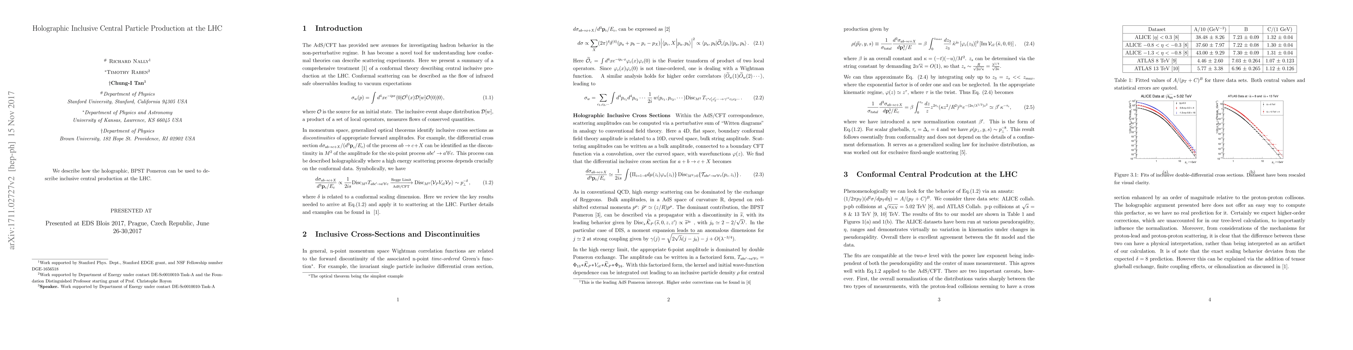 Summary: This paper utilizes the holographic BPST Pomeron model to explain the inclusive central particle production observed in LHC experiments, providing a novel approach to understanding high-energy interactions.