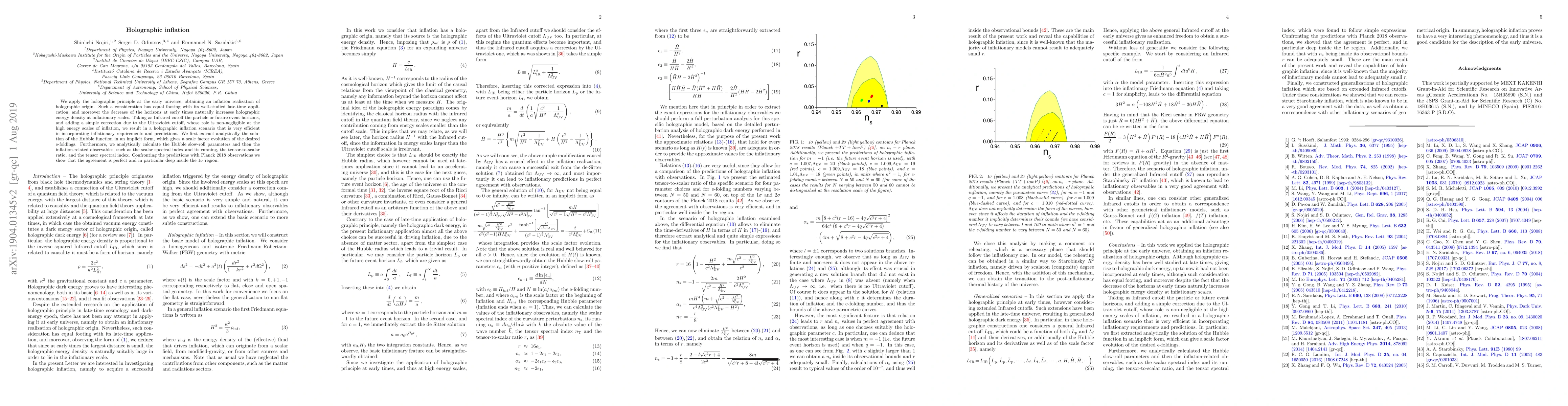 This paper proposes a holographic inflation model where the holographic principle is applied to the early universe, leading to an inflationary scenario driven by holographic energy density. The model successfully matches observational data from Planck 2018, showing excellent agreement within the 1$\sigma$ region for key inflationary parameters.