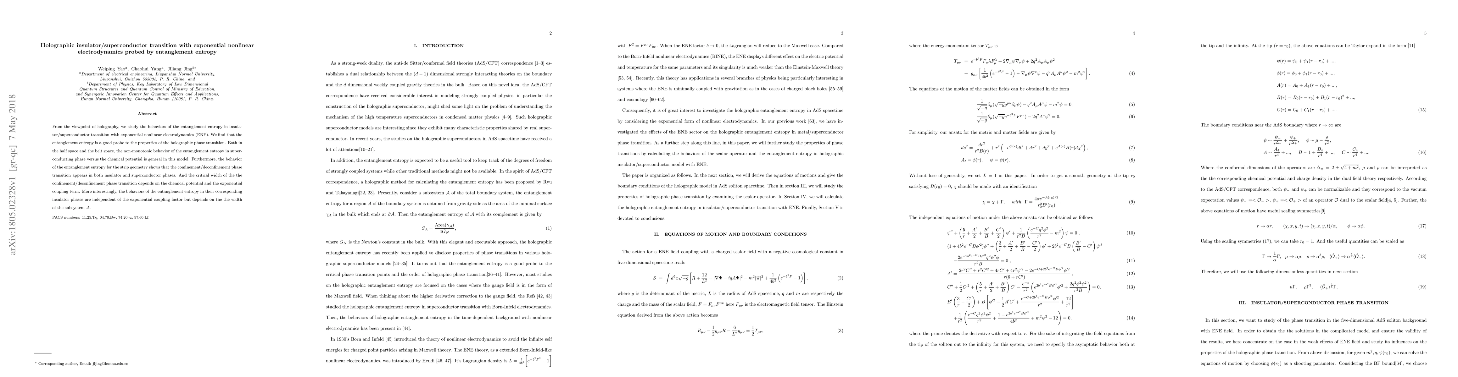 This research investigates the entanglement entropy's role as a probe in the insulator/superconductor transition via holographic models with exponential nonlinear electrodynamics. It finds non-monotonic entanglement entropy behaviors in superconducting phases and identifies confinement/deconfinement transitions, whose critical width is influenced by chemical potential and the exponential coupling term.
