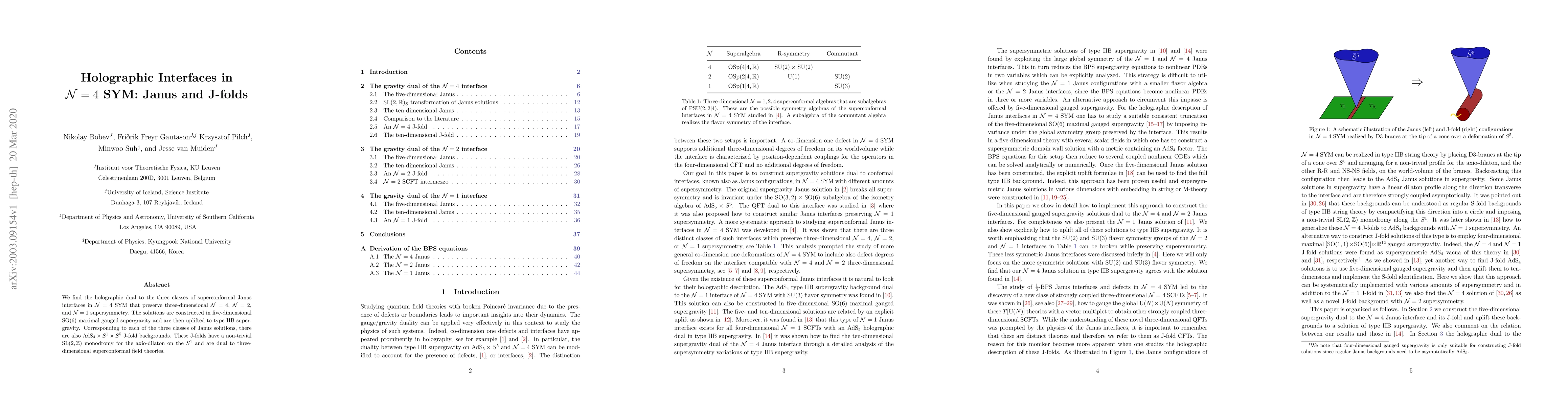 We find the holographic dual to the three classes of superconformal Janus interfaces in $\mathcal{N}=4$ SYM that preserve three-dimensional $\mathcal{N}=4$, $\mathcal{N}=2$, and $\mathcal{N}=1$ supersymmetry. The solutions are constructed in five-dimensional SO(6) maximal gauged supergravity and are then uplifted to type IIB supergravity. Corresponding to each of the three classes of Janus solutions, there are also AdS$_4\times S^1\times S^5$ J-fold backgrounds. These J-folds have a non-trivial SL$(2,\mathbb{Z})$ monodromy for the axio-dilaton on the $S^1$ and are dual to three-dimensional superconformal field theories.