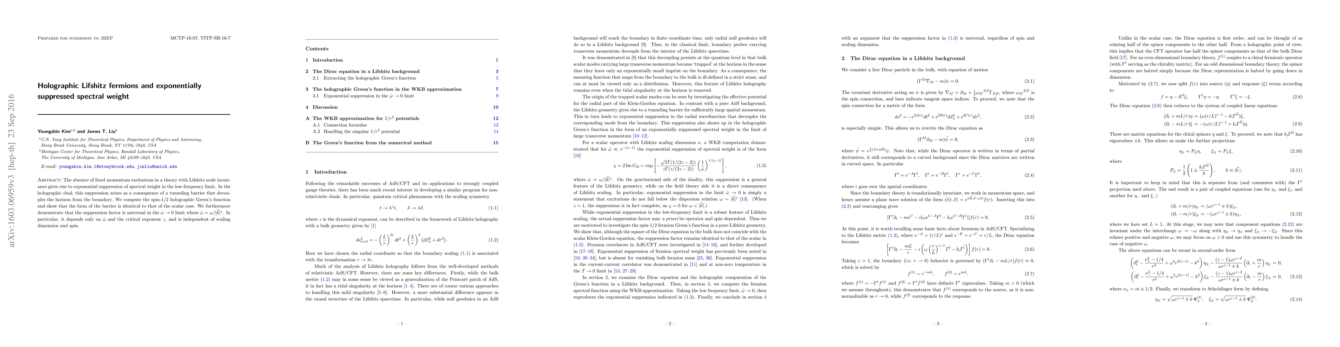 The absence of fixed momentum excitations in a theory with Lifshitz scale invariance gives rise to exponential suppression of spectral weight in the low-frequency limit. In the holographic dual, this suppression arises as a consequence of a tunneling barrier that decouples the horizon from the boundary. We compute the spin-1/2 holographic Green's function and show that the form of the barrier is identical to that of the scalar case. We furthermore demonstrate that the suppression factor is universal in the $\hat\omega\to0$ limit where $\hat\omega=\omega/|\vec k|^z$. In particular, it depends only on $\hat\omega$ and the critical exponent $z$, and is independent of scaling dimension and spin.