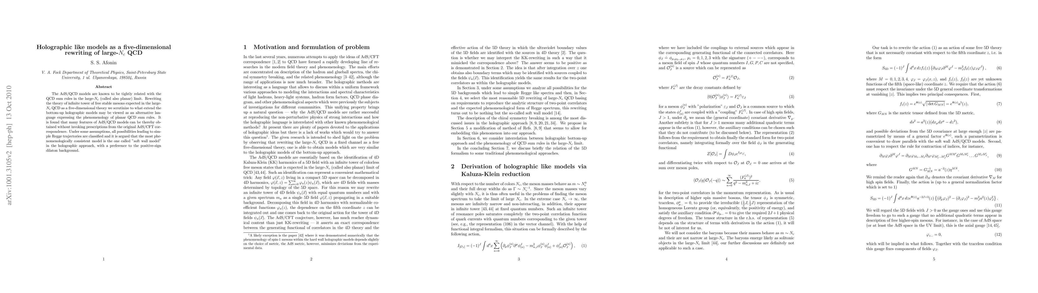 This research explores the relationship between AdS/QCD models and large-Nc QCD sum rules, rewriting the latter as a five-dimensional theory. It finds that many AdS/QCD features can be derived without direct AdS/CFT prescriptions, with the 'soft wall model' and positive-sign dilaton background providing the most phenomenologically consistent results.