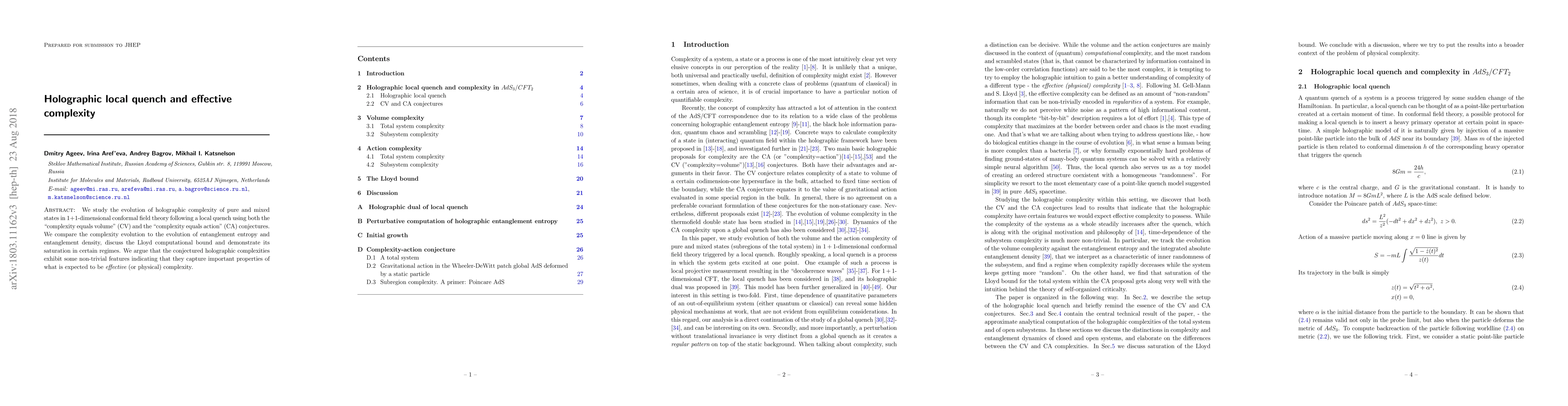 We study the evolution of holographic complexity of pure and mixed states in $1+1$-dimensional conformal field theory following a local quench using both the "complexity equals volume" (CV) and the "complexity equals action" (CA) conjectures. We compare the complexity evolution to the evolution of entanglement entropy and entanglement density, discuss the Lloyd computational bound and demonstrate its saturation in certain regimes. We argue that the conjectured holographic complexities exhibit some non-trivial features indicating that they capture important properties of what is expected to be effective (or physical) complexity.