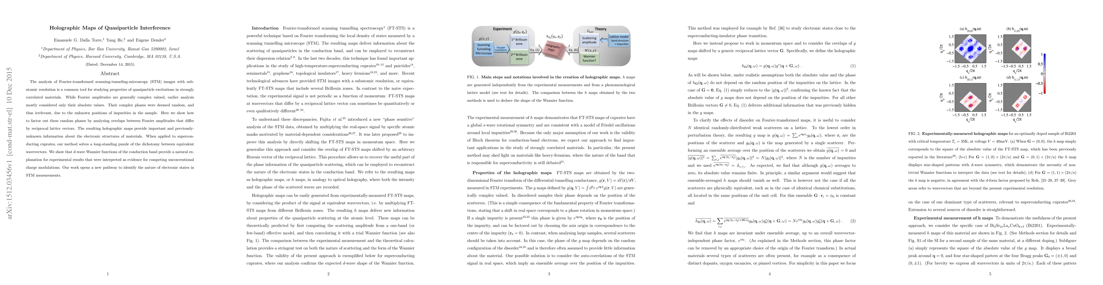 The analysis of Fourier-transformed scanning-tunneling-microscopy (STM) images with subatomic resolution is a common tool for studying properties of quasiparticle excitations in strongly correlated materials. While Fourier amplitudes are generally complex valued, earlier analysis mostly considered only their absolute values. Their complex phases were deemed random, and thus irrelevant, due to the unknown positions of impurities in the sample. Here we show how to factor out these random phases by analysing overlaps between Fourier amplitudes that differ by reciprocal lattice vectors. The resulting holographic maps provide important and previously-unknown information about the electronic structures of materials. When applied to superconducting cuprates, our method solves a long-standing puzzle of the dichotomy between equivalent wavevectors. We show that $d$-wave Wannier functions of the conduction band provide a natural explanation for experimental results that were interpreted as evidence for competing unconventional charge modulations. Our work opens a new pathway to identify the nature of electronic states in STM measurements.