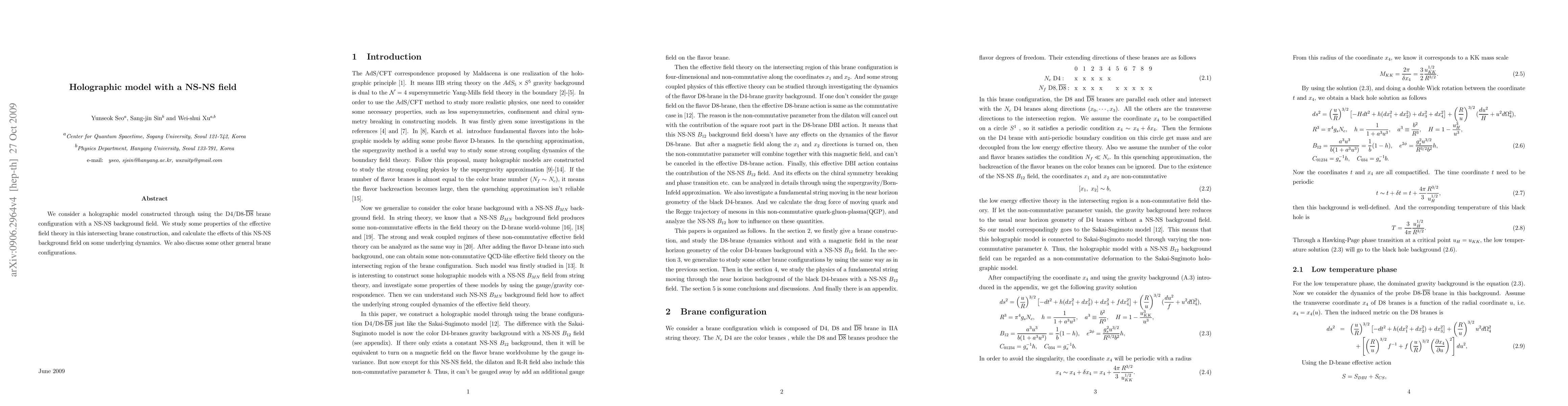 We consider a holographic model constructed through using the D4/D8-$\bar{\rm D8}$ brane configuration with a background field. We study some properties of the effective field theory in this intersecting brane construction, and calculate the effects of this NS-NS background field on some underlying dynamics. We also discuss some other general brane configurations.