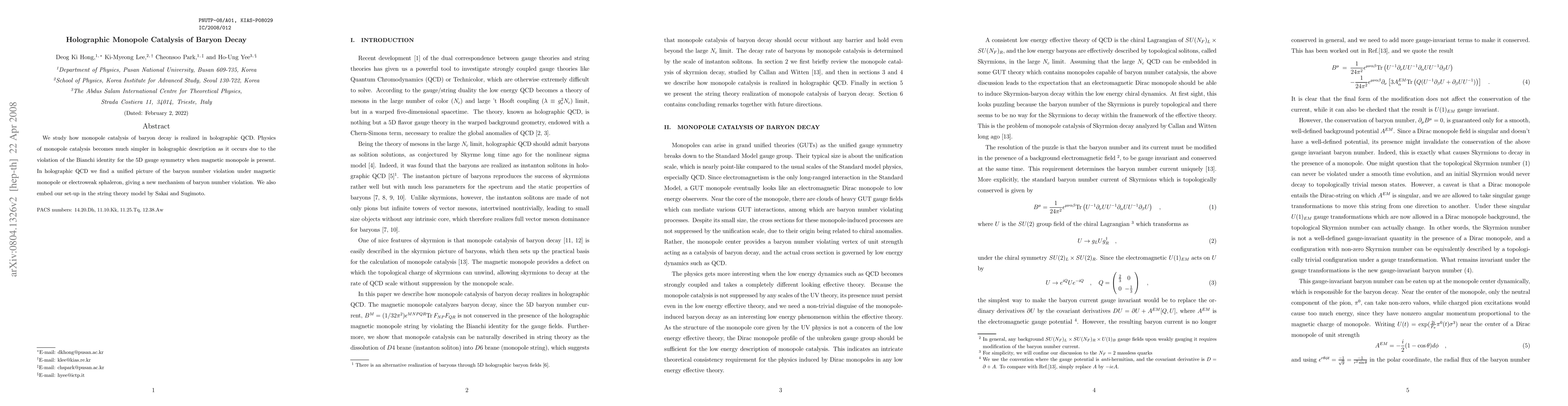 This paper investigates monopole catalysis of baryon decay in holographic QCD, revealing a simplified mechanism due to the violation of the Bianchi identity in the presence of a magnetic monopole. It provides a unified picture of baryon number violation through both magnetic monopoles and electroweak sphalerons, and aligns this framework with the Sakai-Sugimoto string theory model.